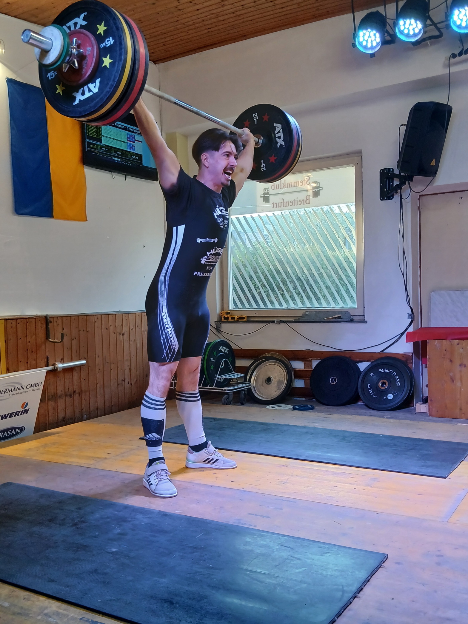 Auch Patrick Manninger war dabei um seine Mannschaft mit 6 gültigen Versuchen – 100kg im Reißen und 125kg im Stoßen – mit voller Kraft zu unterstützen. (243,14 Punkte)